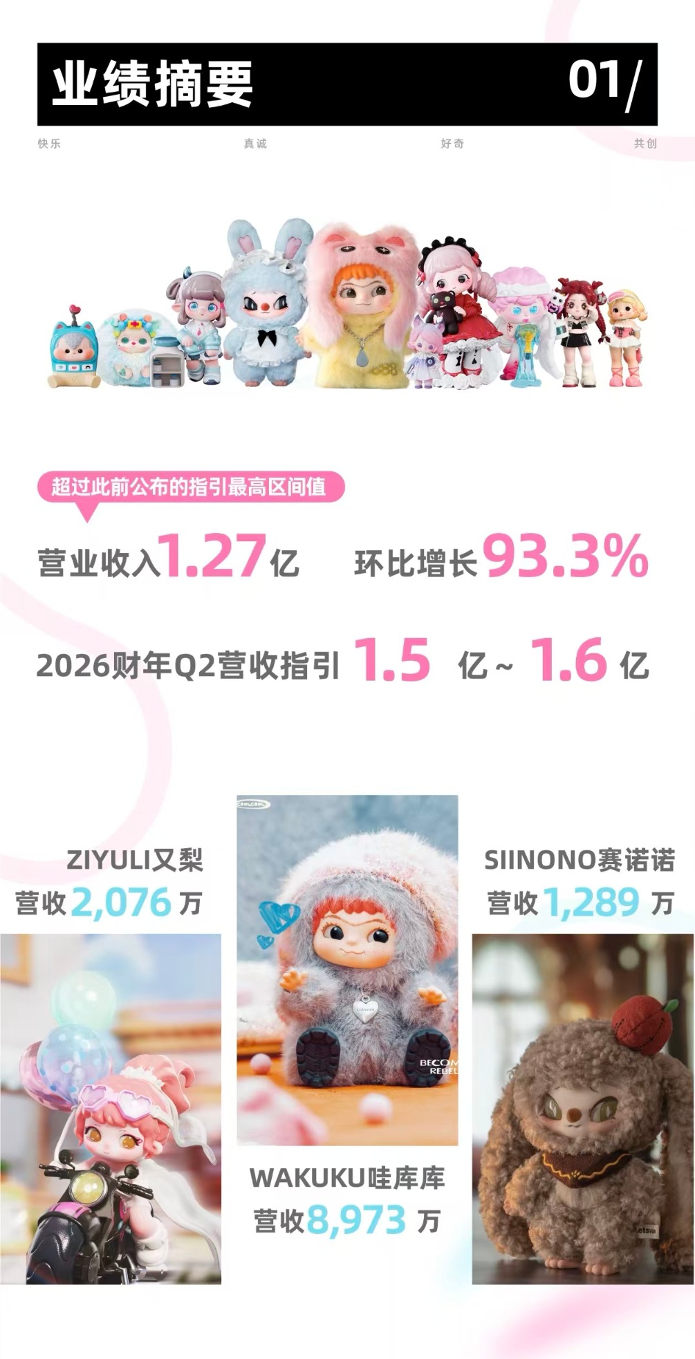 “报告期内,公司营收实现显著环比增长。随着‘IP 研发+全渠道拓展’双引擎战略持续释放增长势能,公司的竞争壁垒进一步夯实。”奇梦岛集团董事长李鹏对上证报记者表示,依托成熟的运营体系与稳健的财务基本面,公司已构建把握行业增长机遇的核心能力与资源储备,为向全球领先潮玩企业进阶筑牢根基,持续为股东创造长期价值。