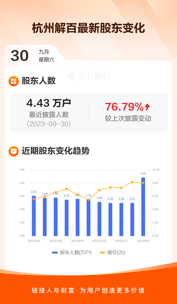 杭州解百:截至9月30日最新股东户数4.43万户,较上期增加76.79%