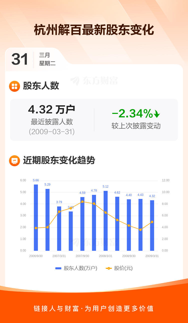 杭州解百:截至3月31日最新股东户数4.32万户,较上期减少2.34%