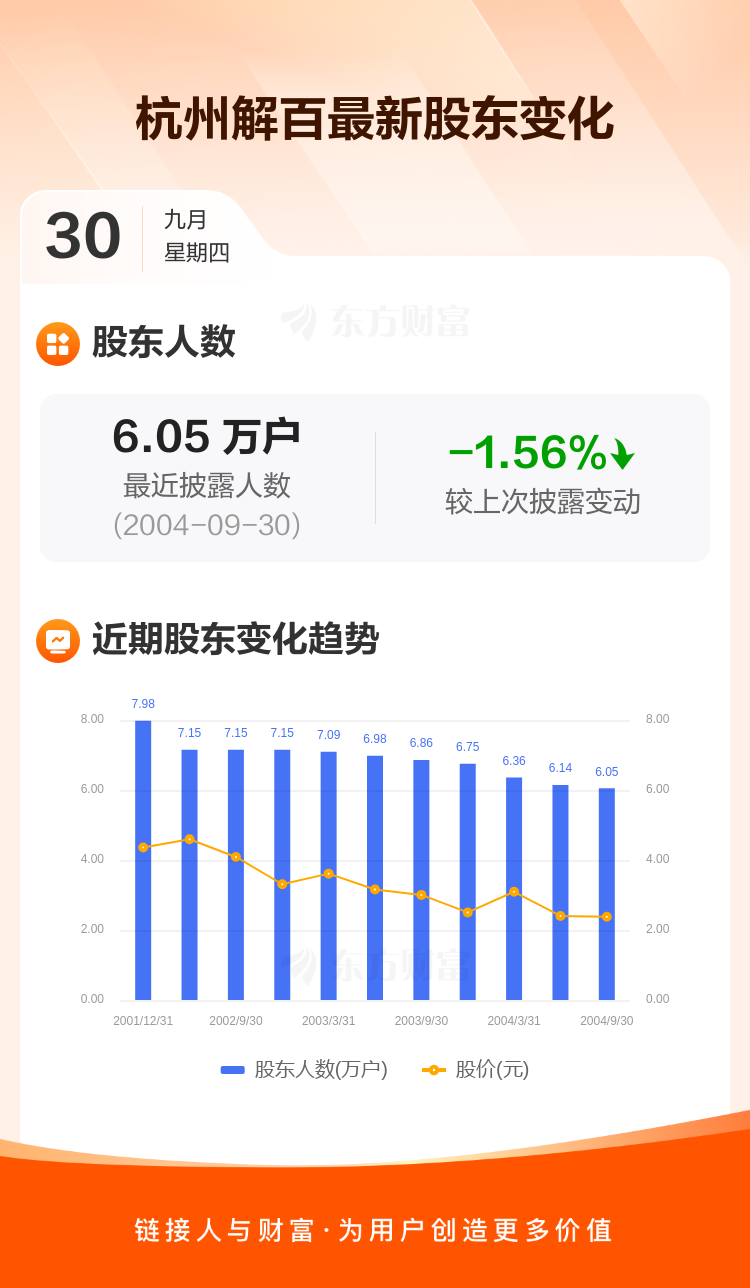 杭州解百:截至9月30日最新股东户数6.05万户,较上期减少1.56%