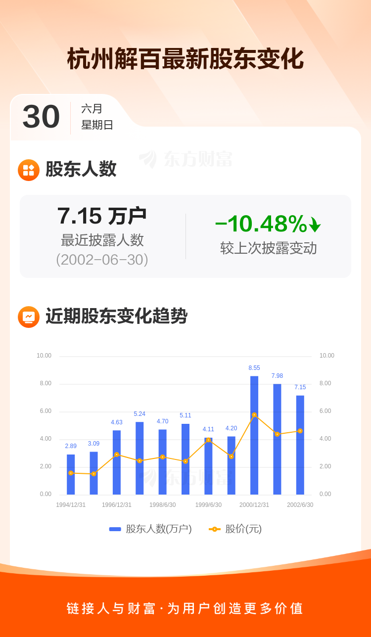 杭州解百:截至6月30日最新股东户数7.15万户,较上期减少10.48%