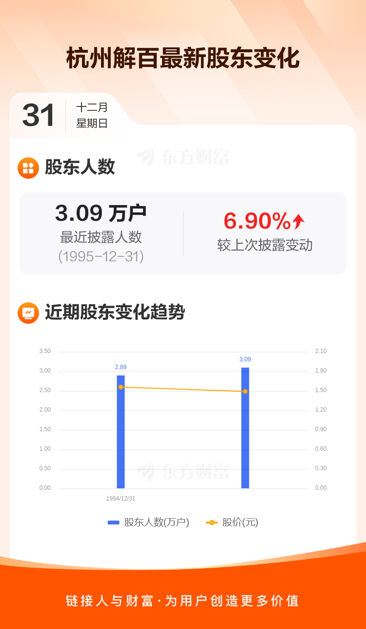 杭州解百:截至12月31日最新股东户数3.09万户,较上期增加6.90%