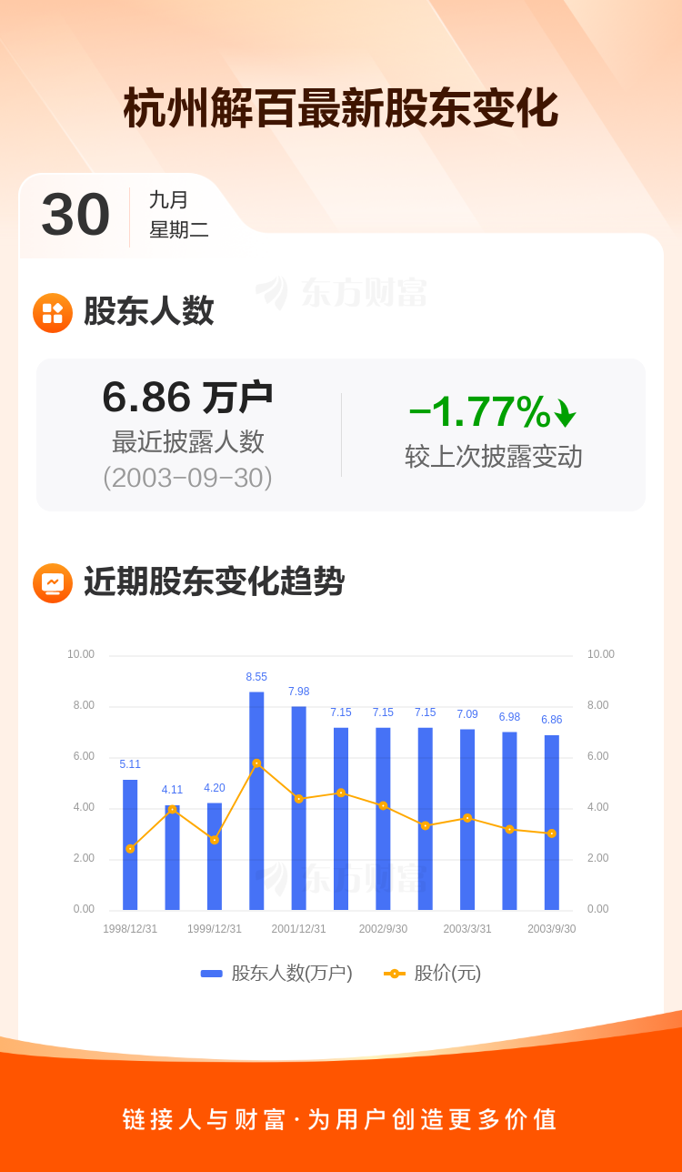 杭州解百:截至9月30日最新股东户数6.86万户,较上期减少1.77%