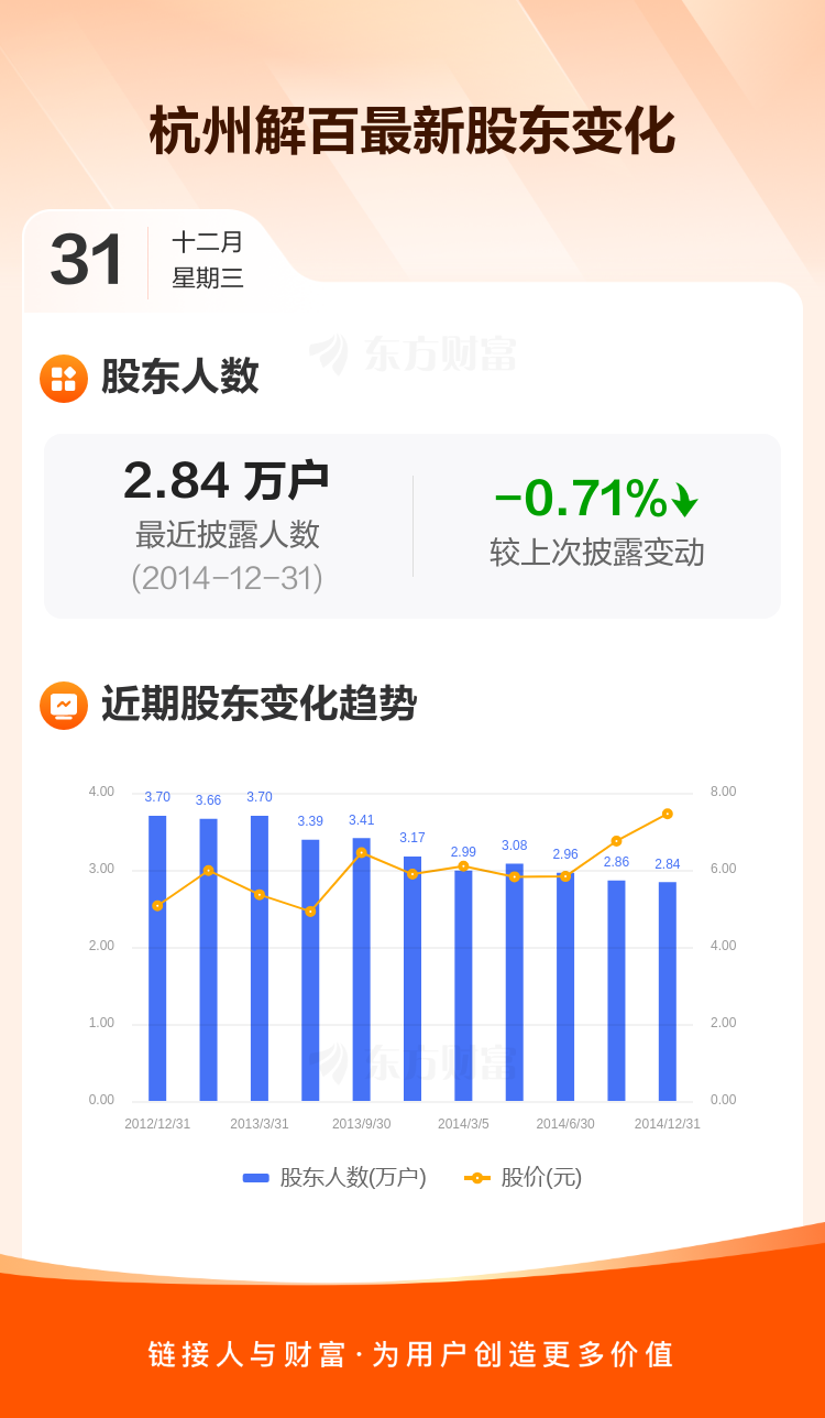 杭州解百:截至12月31日最新股东户数2.84万户,较上期减少0.71%