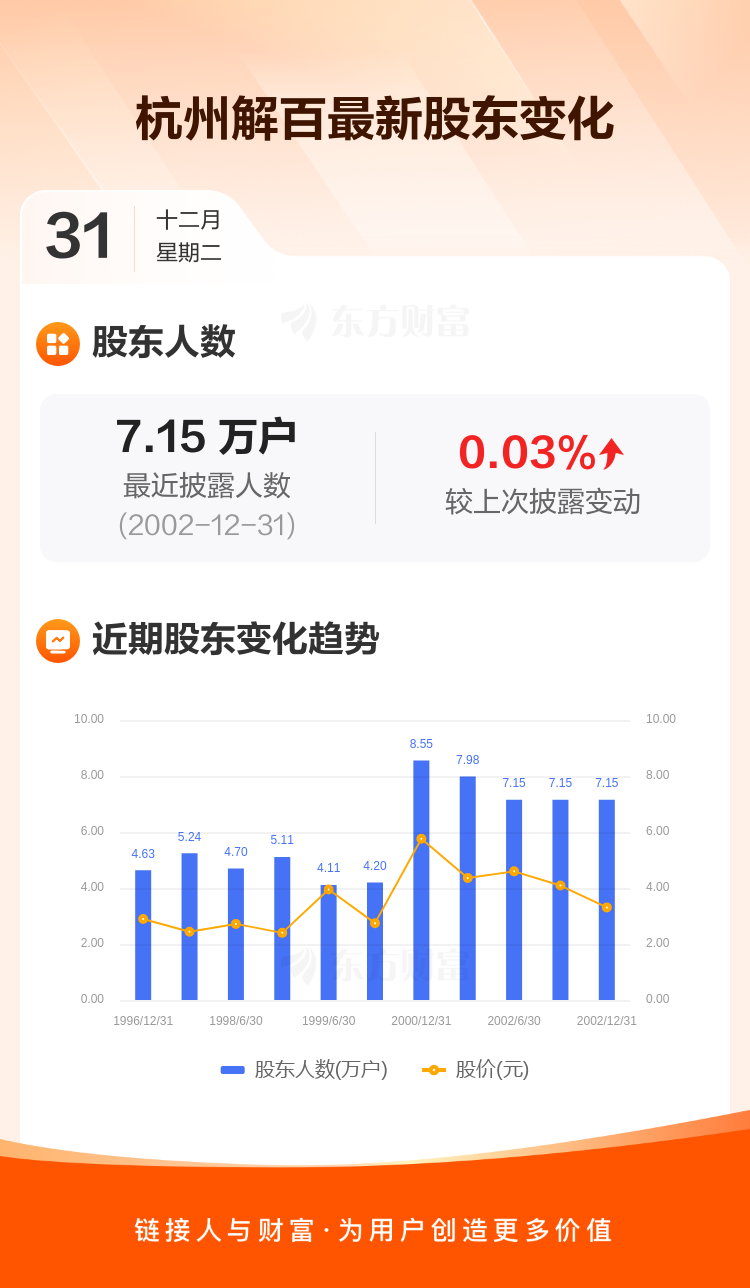 杭州解百:截至12月31日最新股东户数7.15万户,较上期增加0.03%