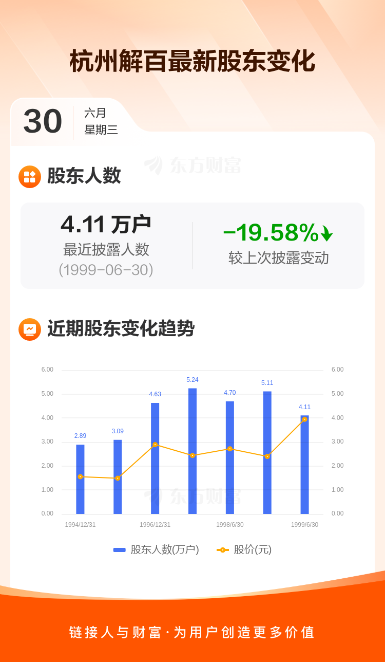 杭州解百:截至6月30日最新股东户数4.11万户,较上期减少19.58%