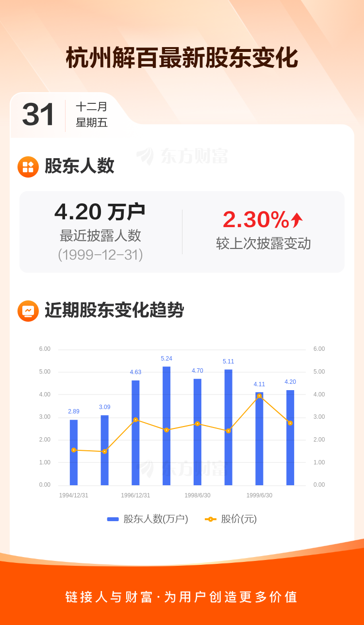 杭州解百:截至12月31日最新股东户数4.20万户,较上期增加2.30%