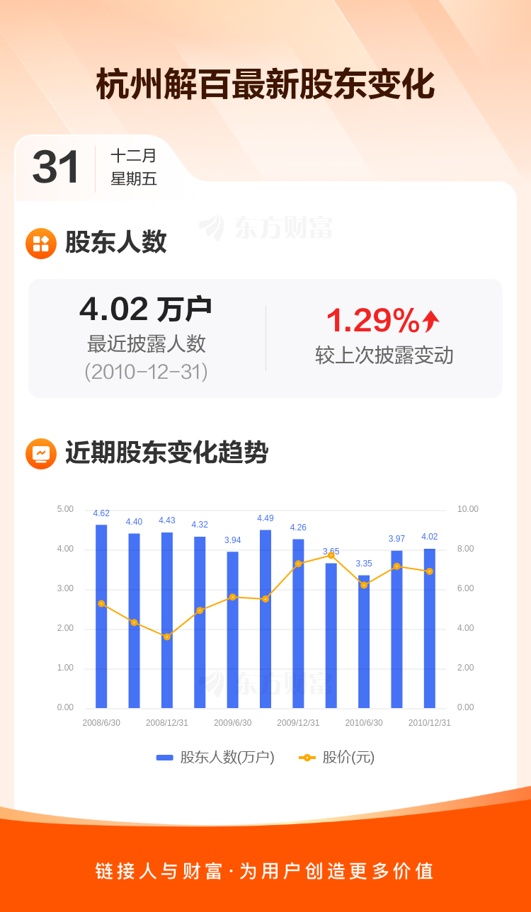 杭州解百:截至12月31日最新股东户数4.02万户,较上期增加1.29%