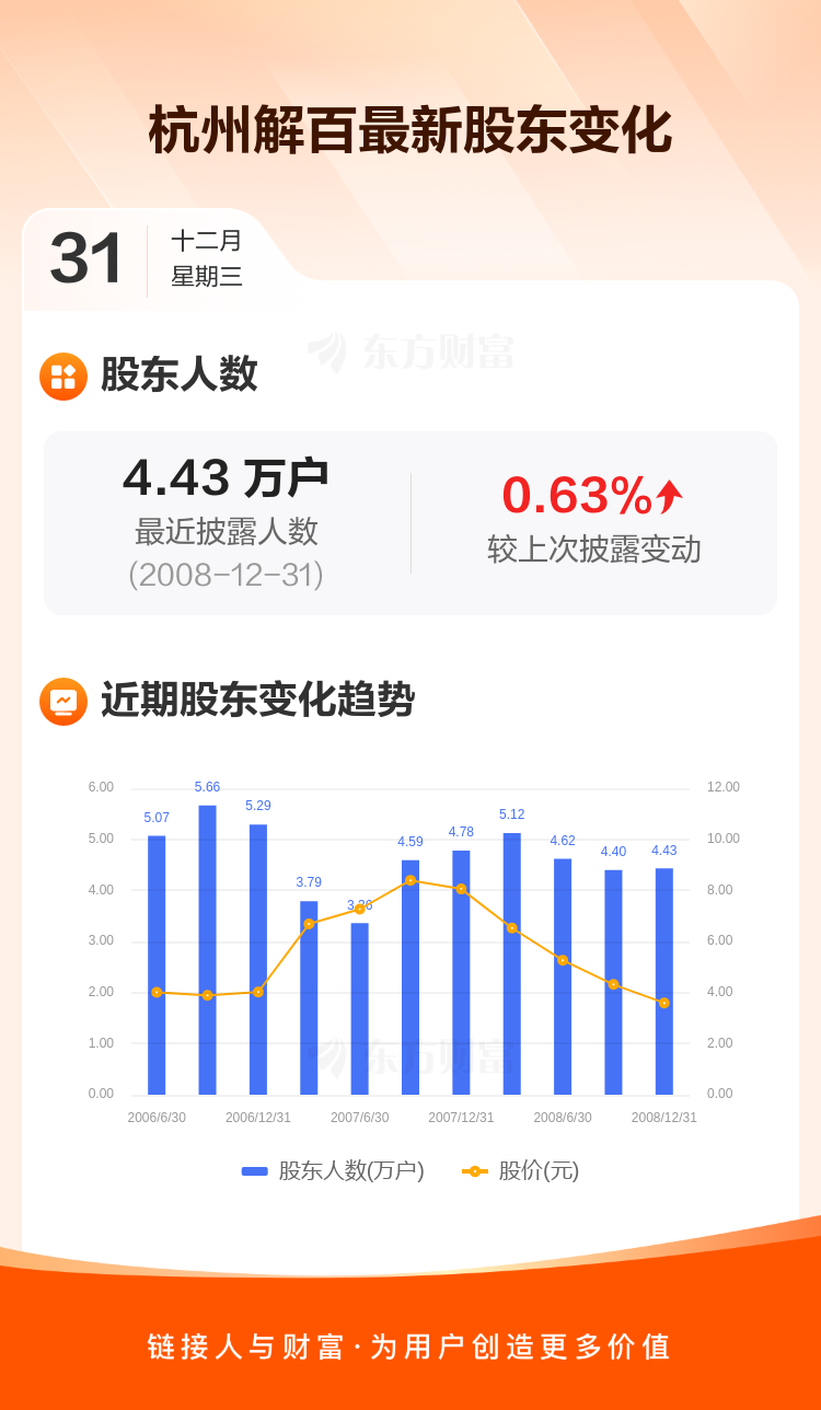 杭州解百:截至12月31日最新股东户数4.43万户,较上期增加0.63%