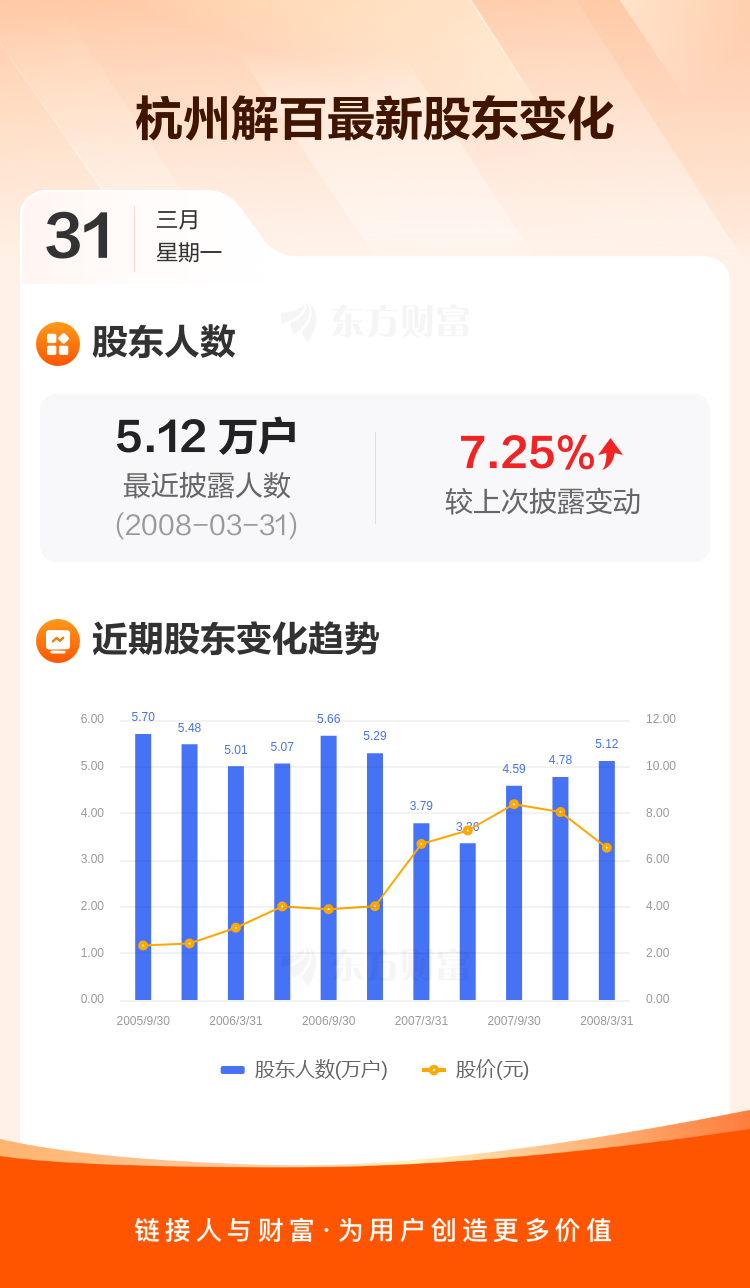 杭州解百:截至3月31日最新股东户数5.12万户,较上期增加7.25%