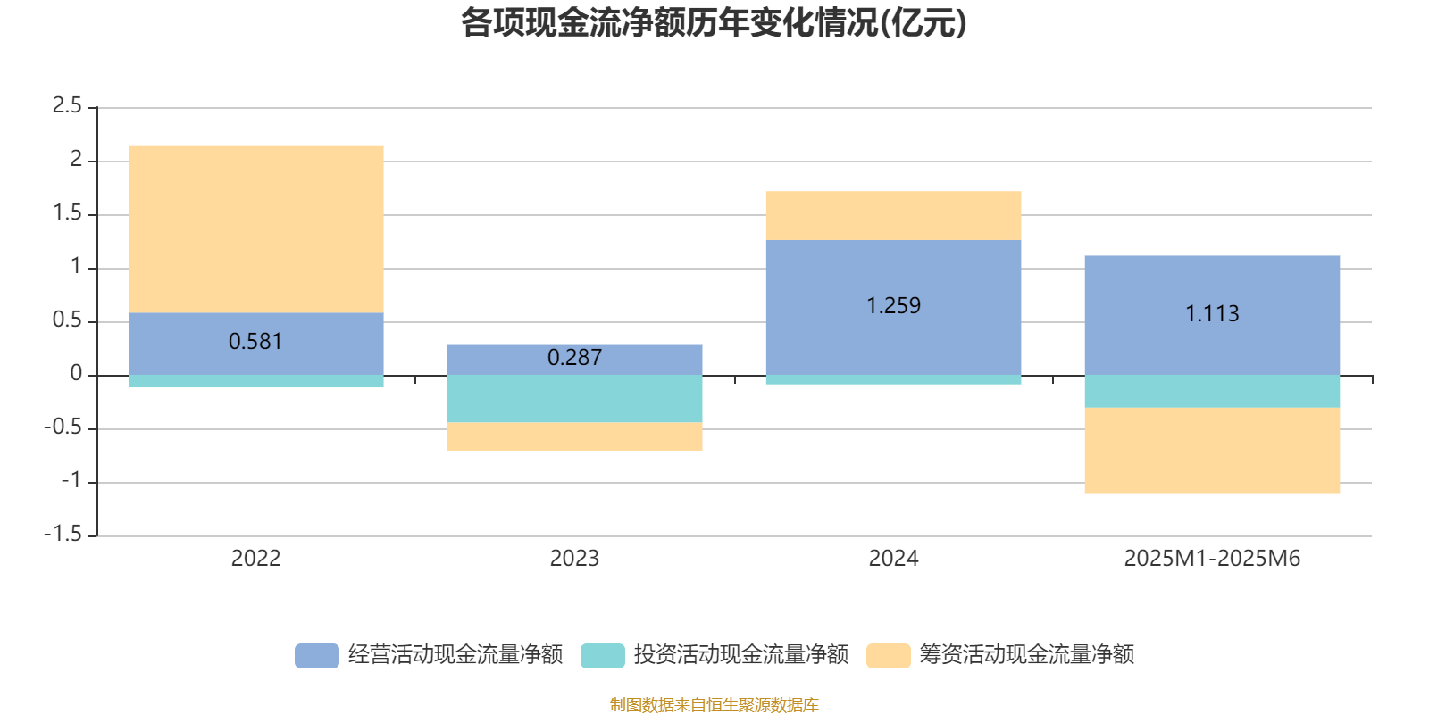 2025年1月至6月,公司经营活动现金流净额为1.11亿元,同比下降7.6%;筹资活动现金流净额-7970万元,同比减少1.26亿元;投资活动现金流净额-3068.1万元,上年同期为-863万元。