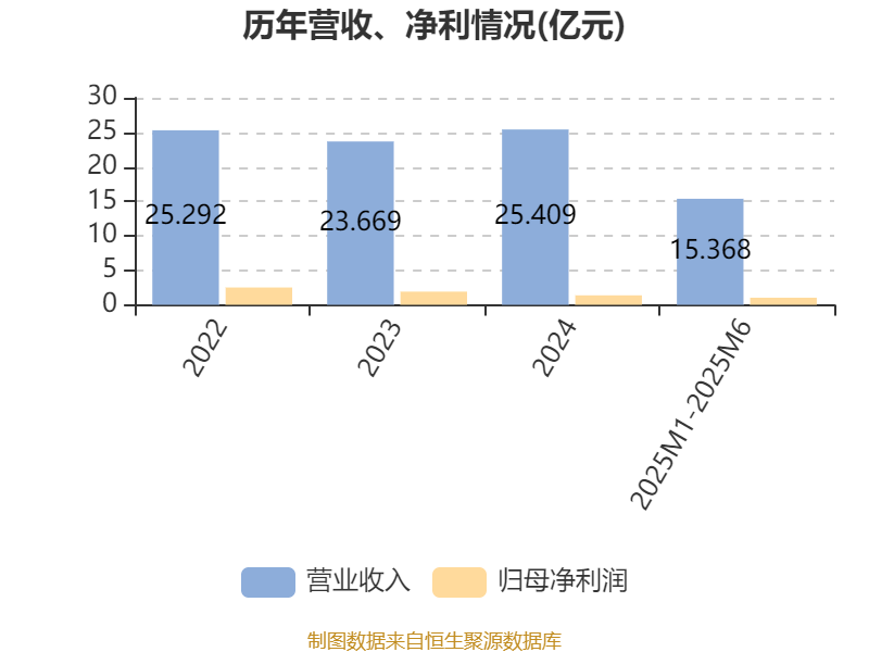 资产重大变化方面,截至2025年6月,公司应收票据及应收账款较上期末增加17.98%,占公司总资产比重上升4.92个百分点;存货较上期末减少11.78%,占公司总资产比重下降4.42个百分点;货币资金较上期末减少2.04%,占公司总资产比重下降1.45个百分点;预付账款较上期末增加13.39%,占公司总资产比重上升0.46个百分点。