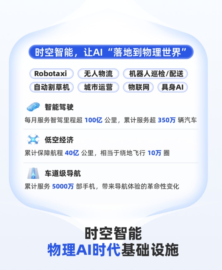 “为我们工作的AI,需要理解世界、感知世界、看清世界。AI与时空智能融合,就产生了真正能在物理世界里工作的智能体。”千寻位置CEO陈金培认为,时空智能是让AI真正“落地到物理世界”的基础设施,它为AI提供“在哪里、何时、如何运动”的高精准时空感知、规划、决策和控制能力。