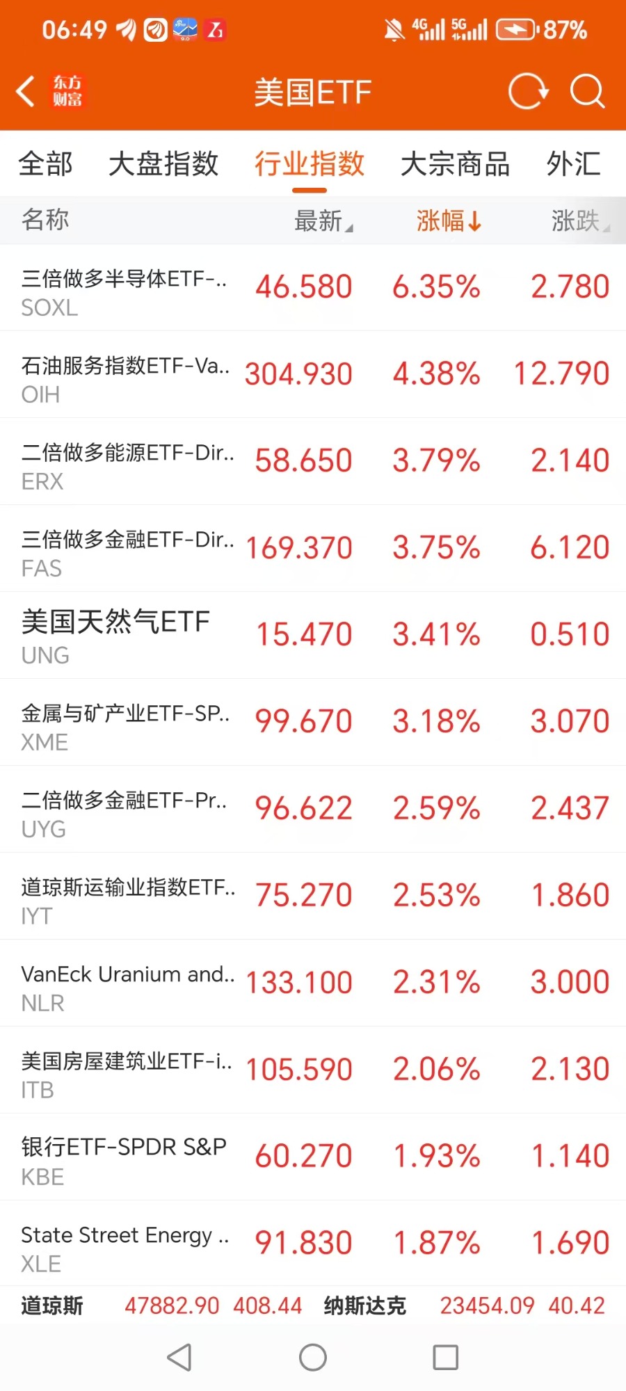 石油服务指数ETF-VanEck (OIH.US) 升4.41%,成交额1.4亿美元。
