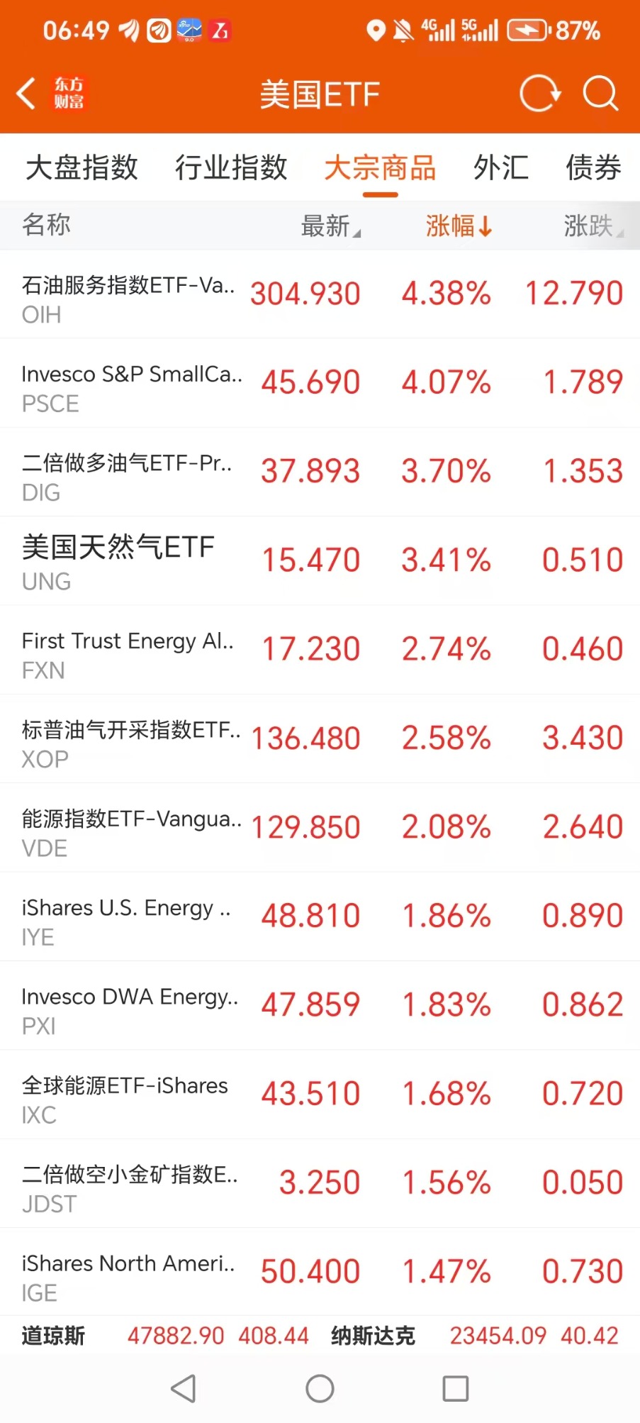 2倍做多标普能源行业指数ETF-ProShares (DIG.US) 升3.75%,成交额89.5万美元。