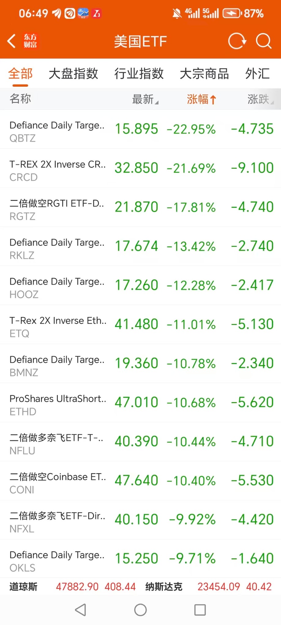 2倍做空QBTS ETF-Defiance (QBTZ.US) 跌22.95%,成交4293.24万美元。