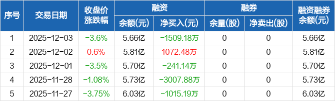 上纬新材融资融券信息显示,2025年12月3日融资净偿还1509.18万元;融资余额5.66亿元,较前一日下降2.6%。