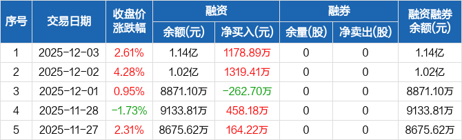新亚电子:融资净买入1178.89万元,融资余额1.14亿元(12-03)