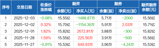 中航机载:融资净偿还1488.87万元,融资余额15.55亿元(12-03)