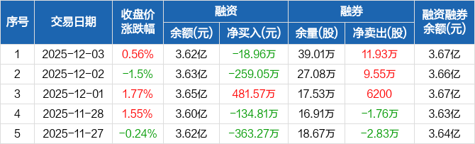 南网储能:融资净偿还18.96万元,融资余额3.62亿元(12-03)