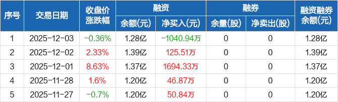 中触媒:融资净偿还1040.94万元,融资余额1.28亿元(12-03)