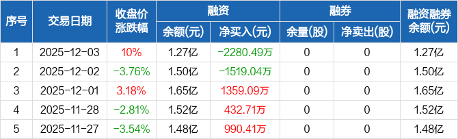 德力佳:融资净偿还2280.49万元,融资余额1.27亿元(12-03)