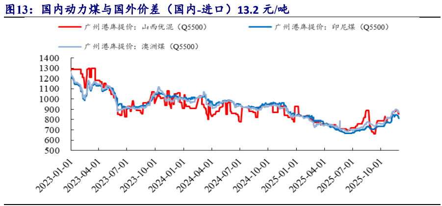 2025年1-11月煤炭价格同比下降明显,但在6月价格筑底后迎来一轮上涨,整体呈现前低后高趋势。伴随2025年下半年供需边际改善,炼焦煤价格在季节性波动中震荡走强。展望后市:供需改善可持续,价格中枢将抬升。