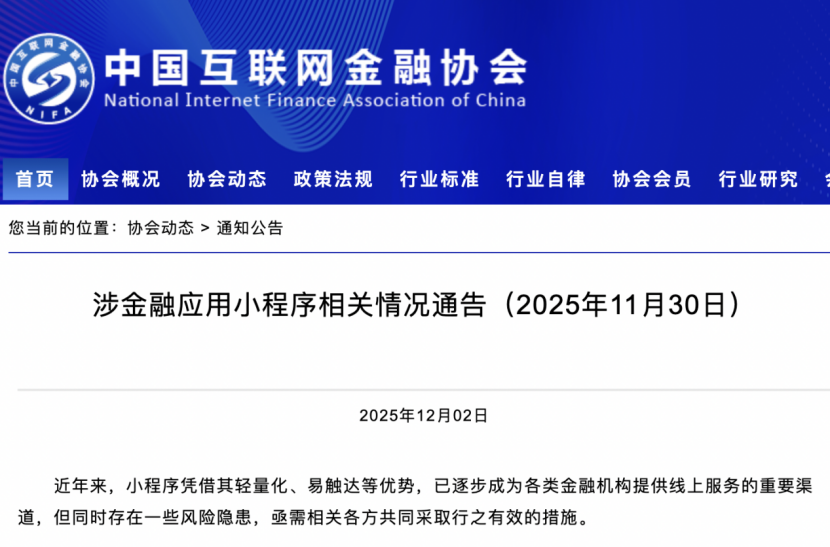 然而,在享受技术创新带来红利的同时,这一新兴渠道也暴露出不容忽视的安全风险与合规漏洞。12月2日,中国互联网金融协会(以下简称“协会”)发布的一份关于涉金融应用小程序安全情况的通告,将行业存在的安全隐患置于聚光灯下,引发关注。