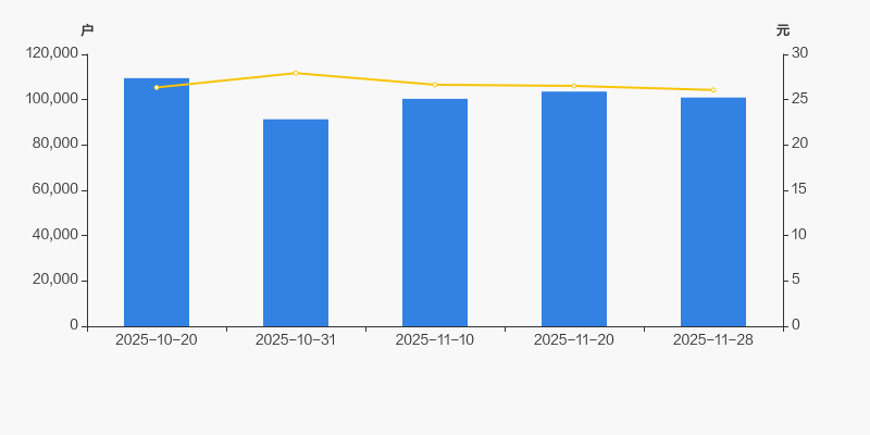 2025年10月20日至今,公司股东户数有所下降,区间跌幅为7.83%。2025年10月20日至2025年11月28日区间股价下降1.06%。