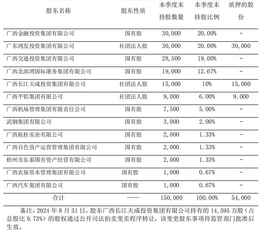 记者注意到,目前北部湾财险还有部分股权处于质押状态。据三季度偿付能力报告,广东鸿发投资集团所持的20%股权、长江天成所持的10%股权、广西平铝集团所持的6%股权均处于质押状态,合计占比近4成。