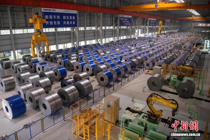 “我们与原料单位直线距离不到2公里,落户于此,正是看中这里‘近港临厂’的优势。”广西宏旺新材料科技有限公司副总经理林海涛介绍,广西宏旺由宏旺控股集团有限公司与广西盛隆冶金有限公司合资组建,占地面积约500亩,总投资超30亿元(人民币,下同),项目全面达产后,将形成约200万吨高性能硅钢及高端镀锌板材的年产能规模,预计年产值约100亿元,项目推进速度远超预期,从开工到一期项目成品下线仅用9个月。