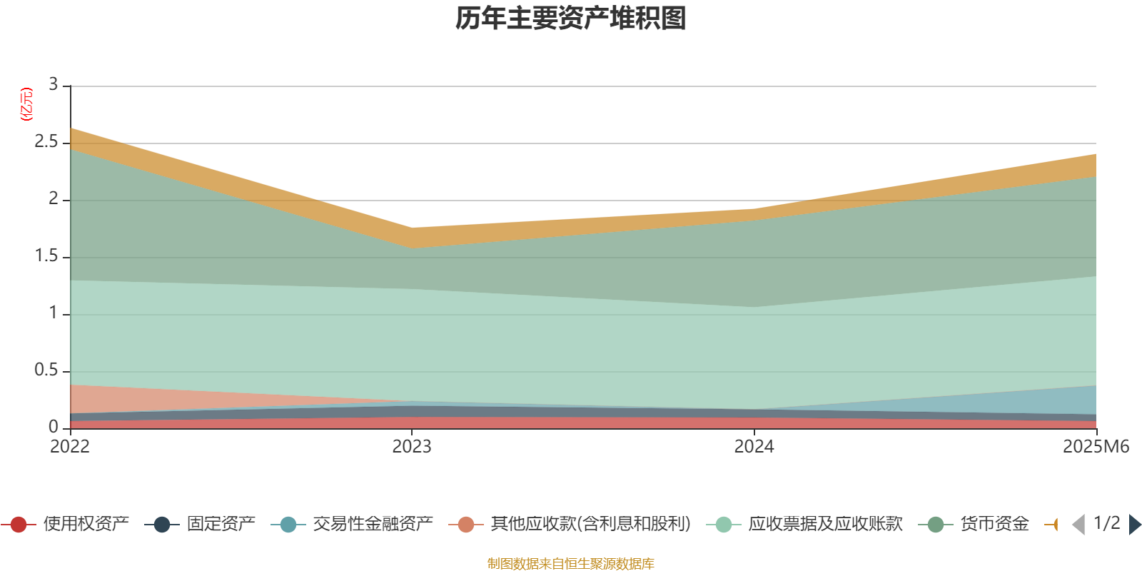 资产重大变化方面,截至2025年6月,公司交易性金融资产占公司总资产的10.45%,上期末为0;应收票据及应收账款较上期末增加6.75%,占公司总资产比重下降6.81个百分点;货币资金较上期末增加15.18%,占公司总资产比重下降3.11个百分点;使用权资产较上期末减少33.75%,占公司总资产比重下降2.31个百分点。