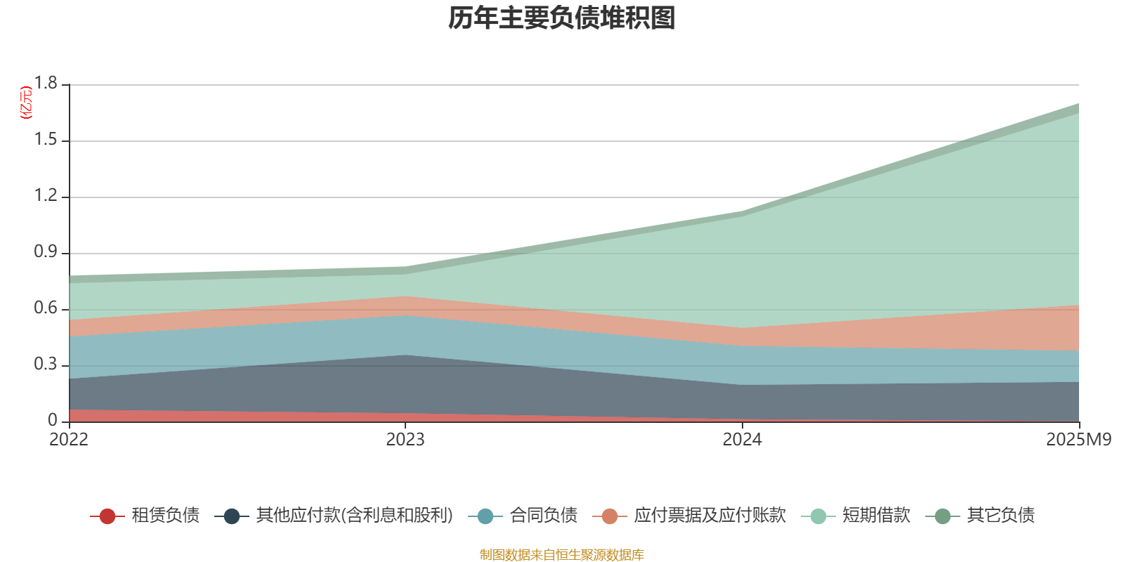 负债重大变化方面,截至2025年9月,公司短期借款较上期末增加72.6%,占公司总资产比重上升11.66个百分点;应付票据及应付账款较上期末增加152.09%,占公司总资产比重上升4.21个百分点;合同负债较上期末减少19.65%,占公司总资产比重下降1.65个百分点;递延收益较上期末增加611.07%,占公司总资产比重上升0.9个百分点。