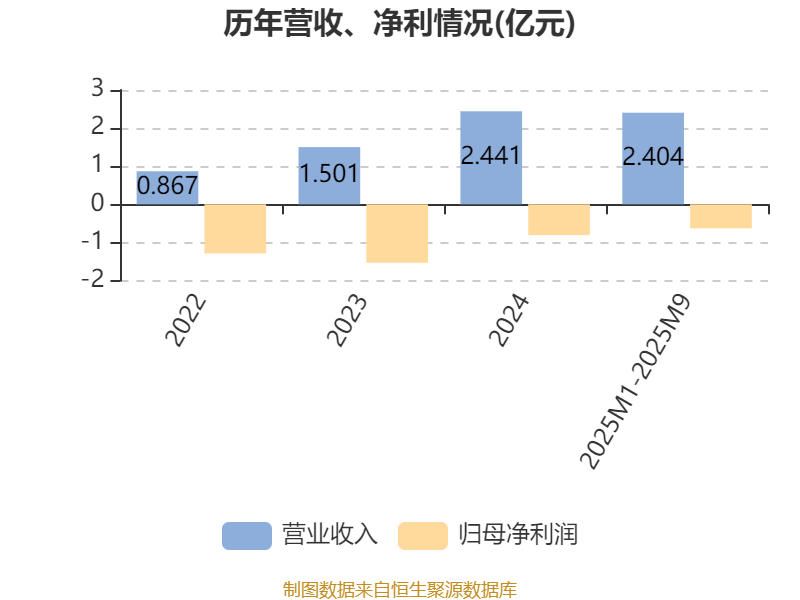 2025年1月1日至2025年9月30日,公司实现营业收入2.4亿元,同比增长24.17%;归母净利润亏损6306.4万元,上年同期亏损4960.3万元;经营活动产生的现金流量净额为-7944.1万元,上年同期为-5500.7万元;据申请书显示,平均净资产收益率为-35%。