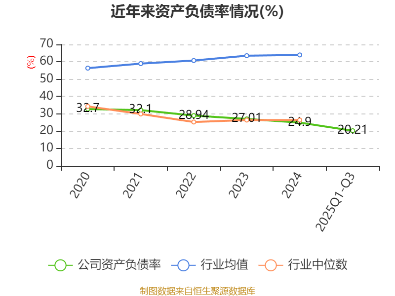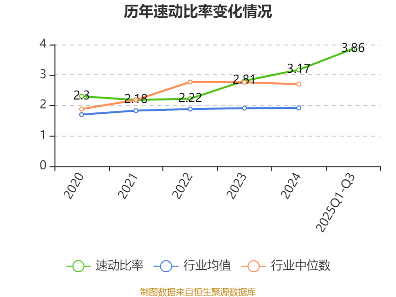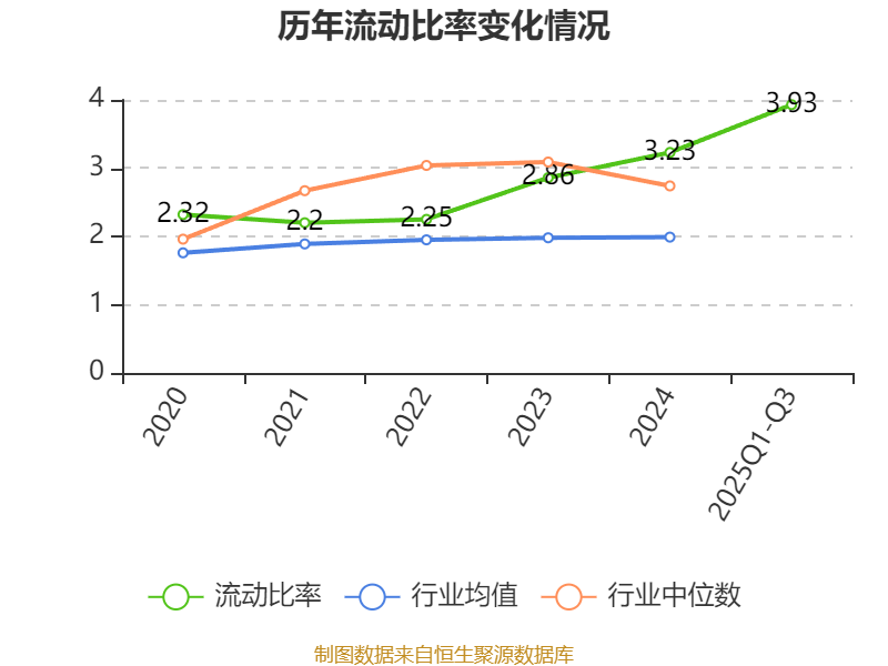 2024年,公司流动比率为3.23,速动比率为3.17。2025年前三季度,公司流动比率为3.93,速动比率为3.86。