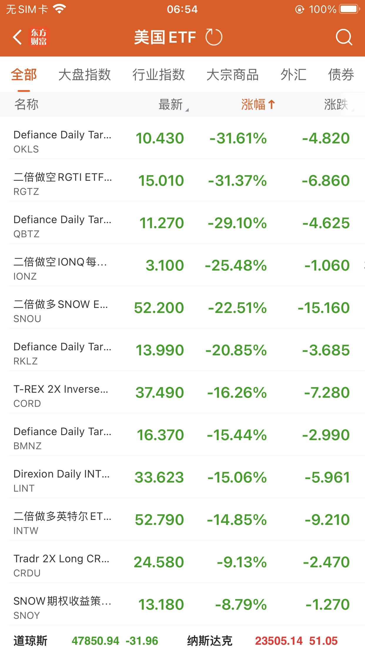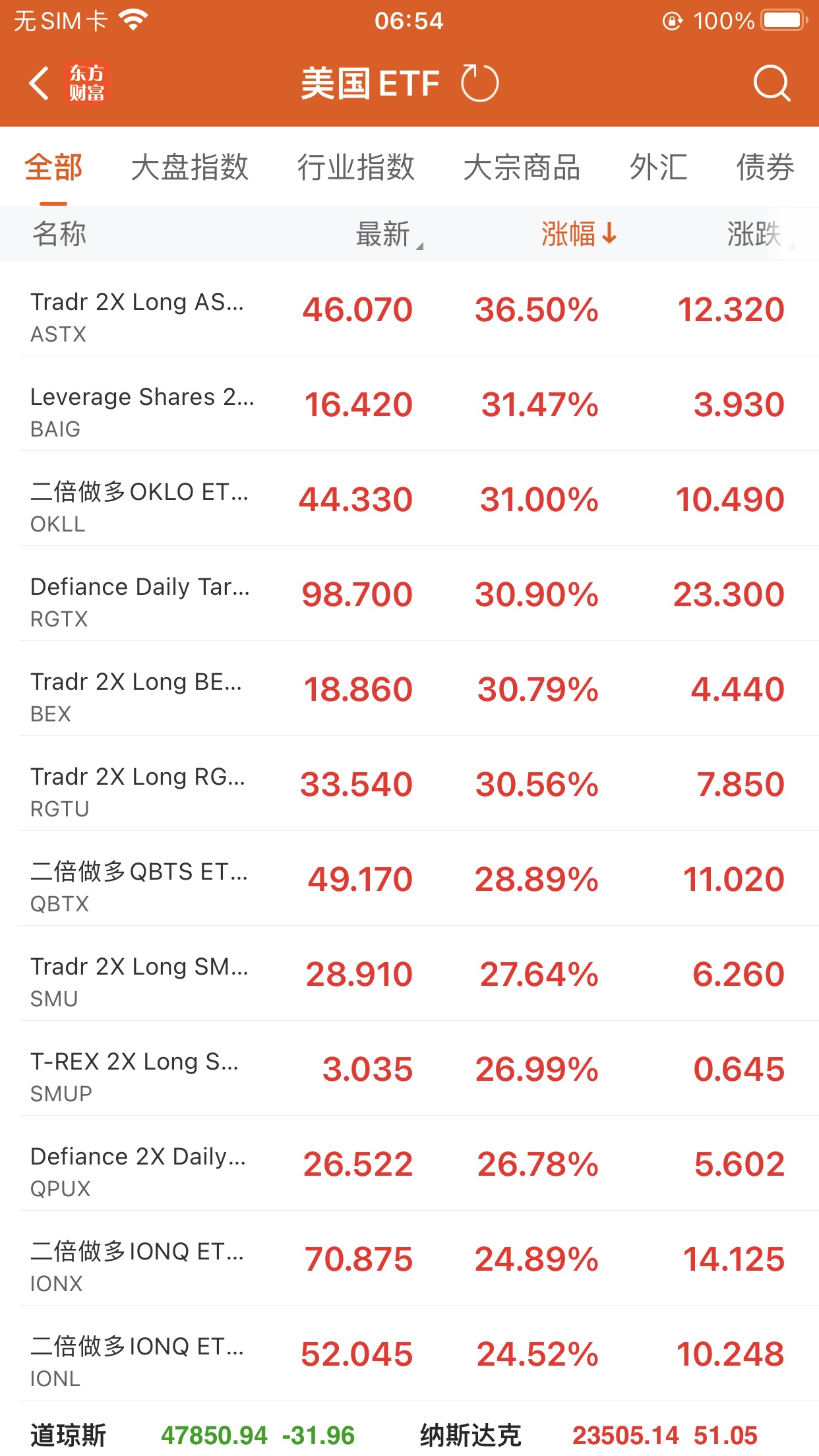 2倍做多OKLO ETF-Defiance (OKLL.US) 升31.00%,成交额1.82亿美元。