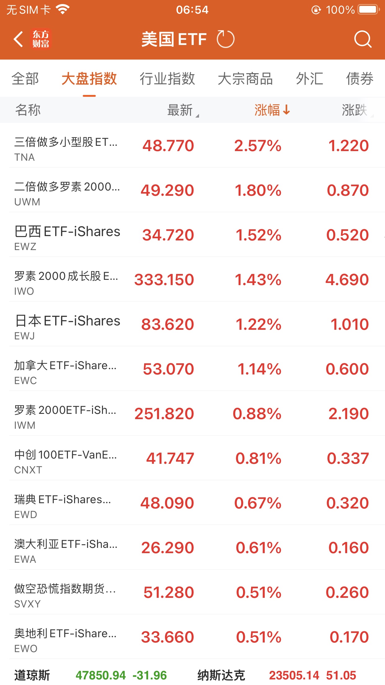 三倍做多小盘股ETF-Direxion (TNA.US) 升2.57%,成交额5.05亿美元。