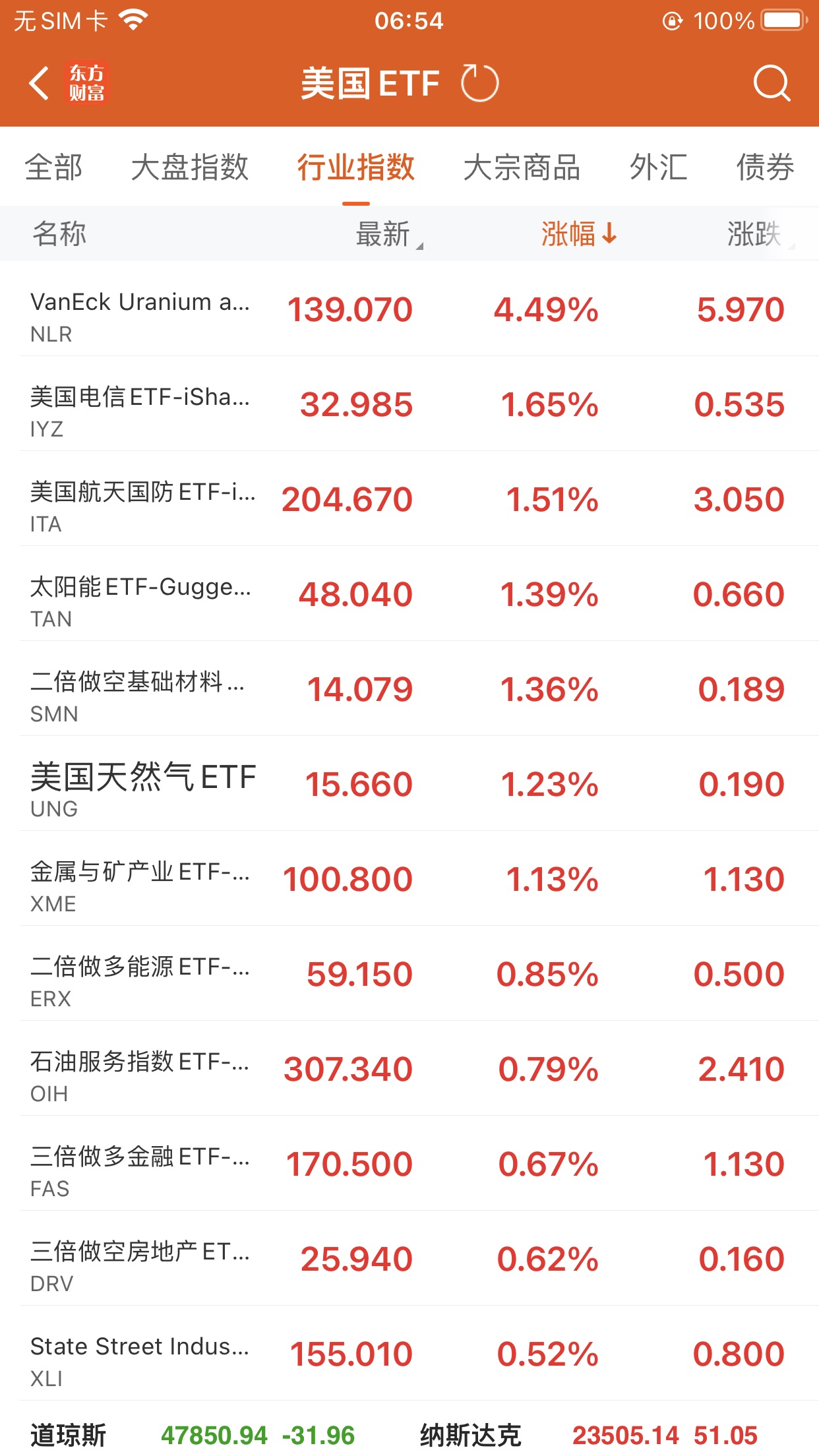 铀与核能ETF-VanEck (NLR.US) 升4.49%,成交额1.21亿美元。