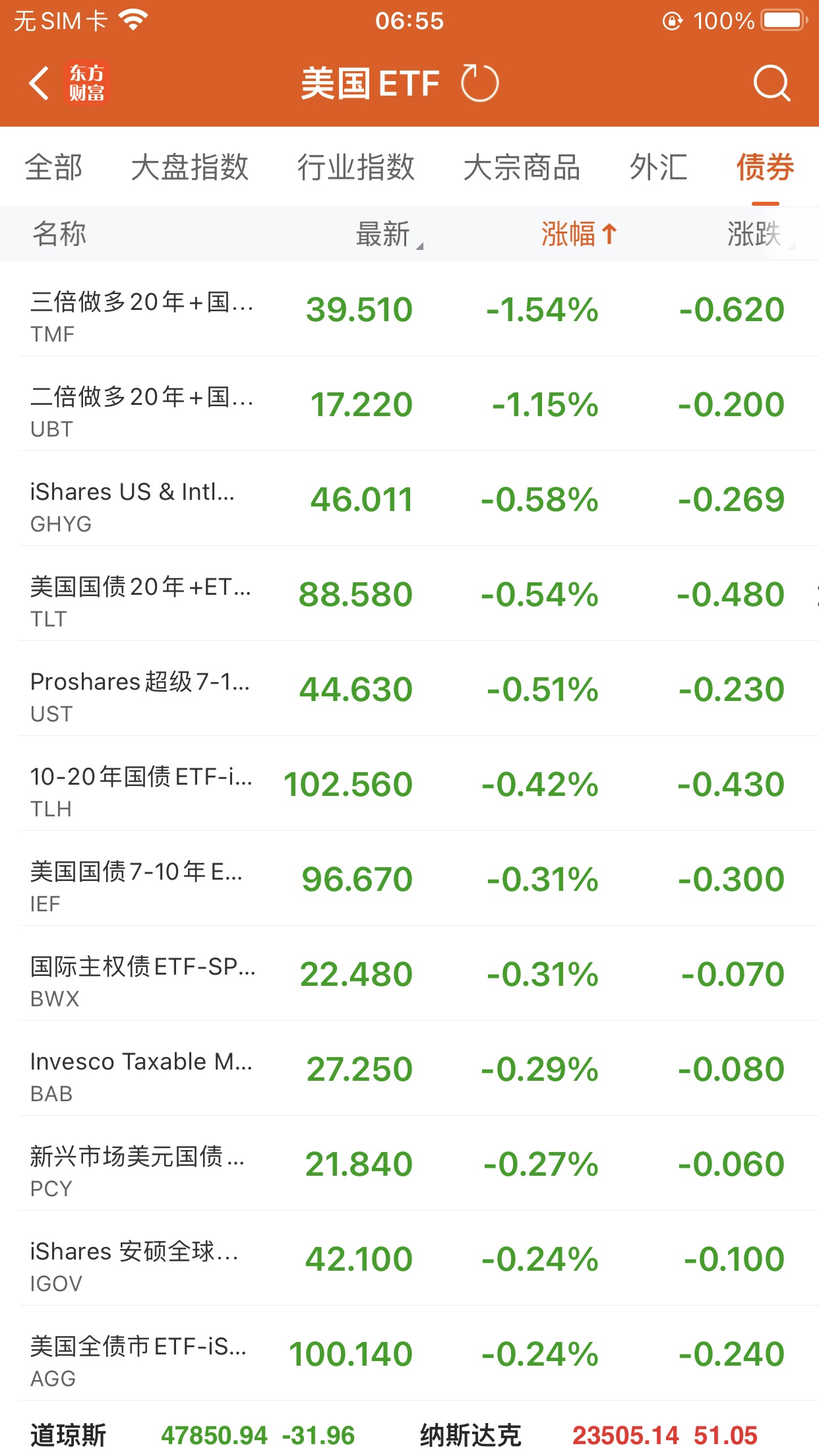 20+年以上美国国债ETF-iShares (TLT.US) 跌0.54%,成交额22.57亿美元。