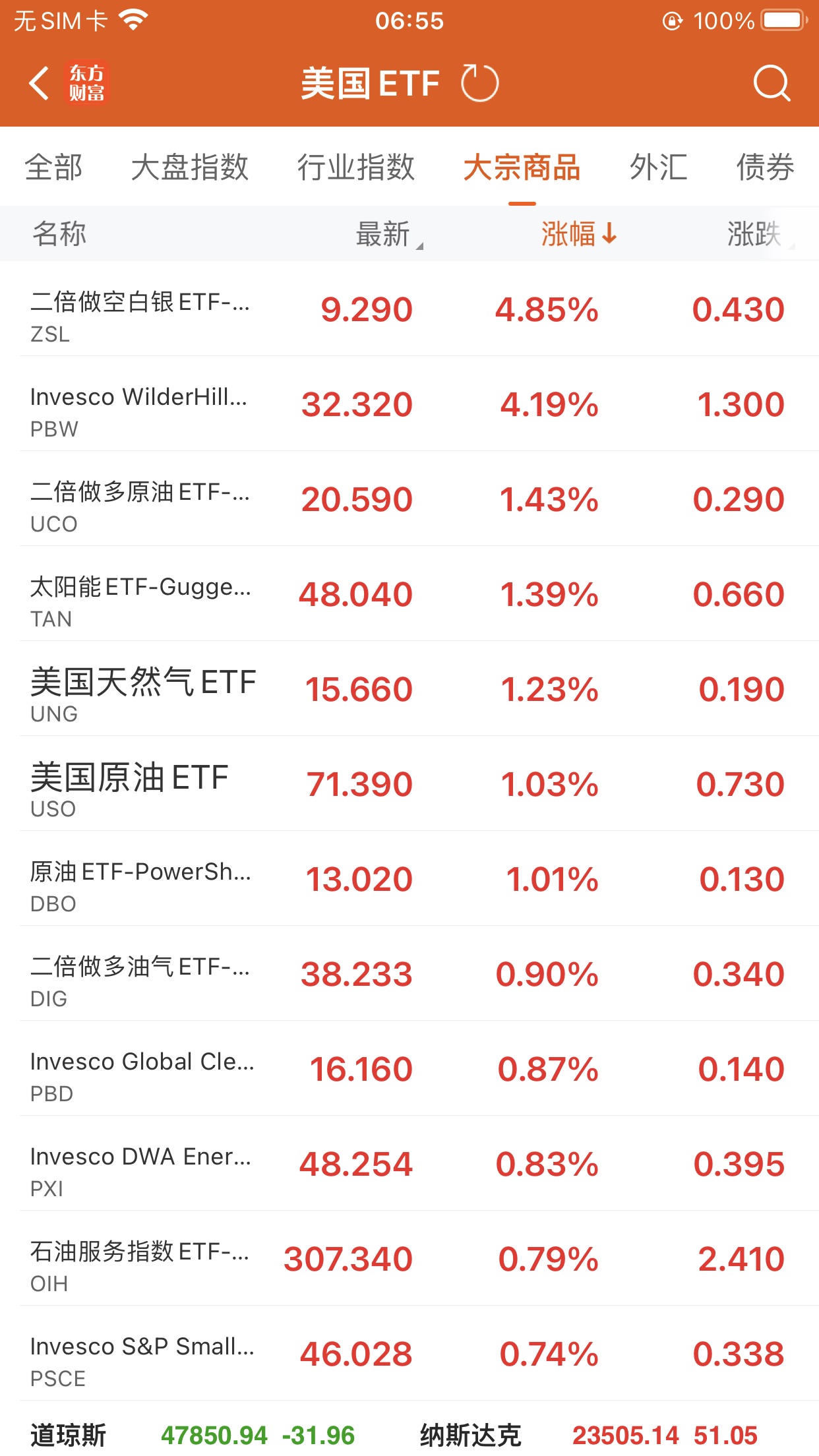 美国天然气ETF (UNG.US) 升1.23%,成交额1.95亿美元。