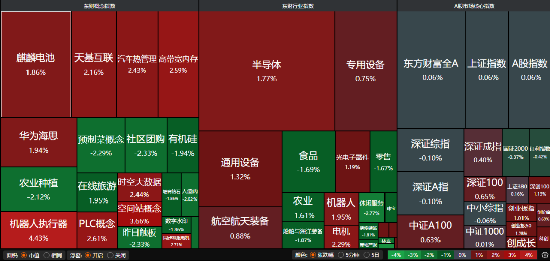 昨日三大指数涨跌不一,沪指跌0.06%,深证成指涨0.40%,创业板指涨1.01%。沪深两市成交额仅有1.55万亿。行业板块多数收跌,电机、航天航空板块涨幅居前,船舶制造、旅游酒店、食品饮料、美容护理、煤炭行业、商业百货、酿酒行业跌幅居前。