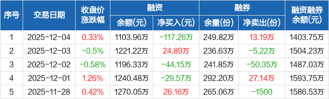 A500ETF南方:融资净偿还117.26万元,融资余额1103.96万元(12-04)