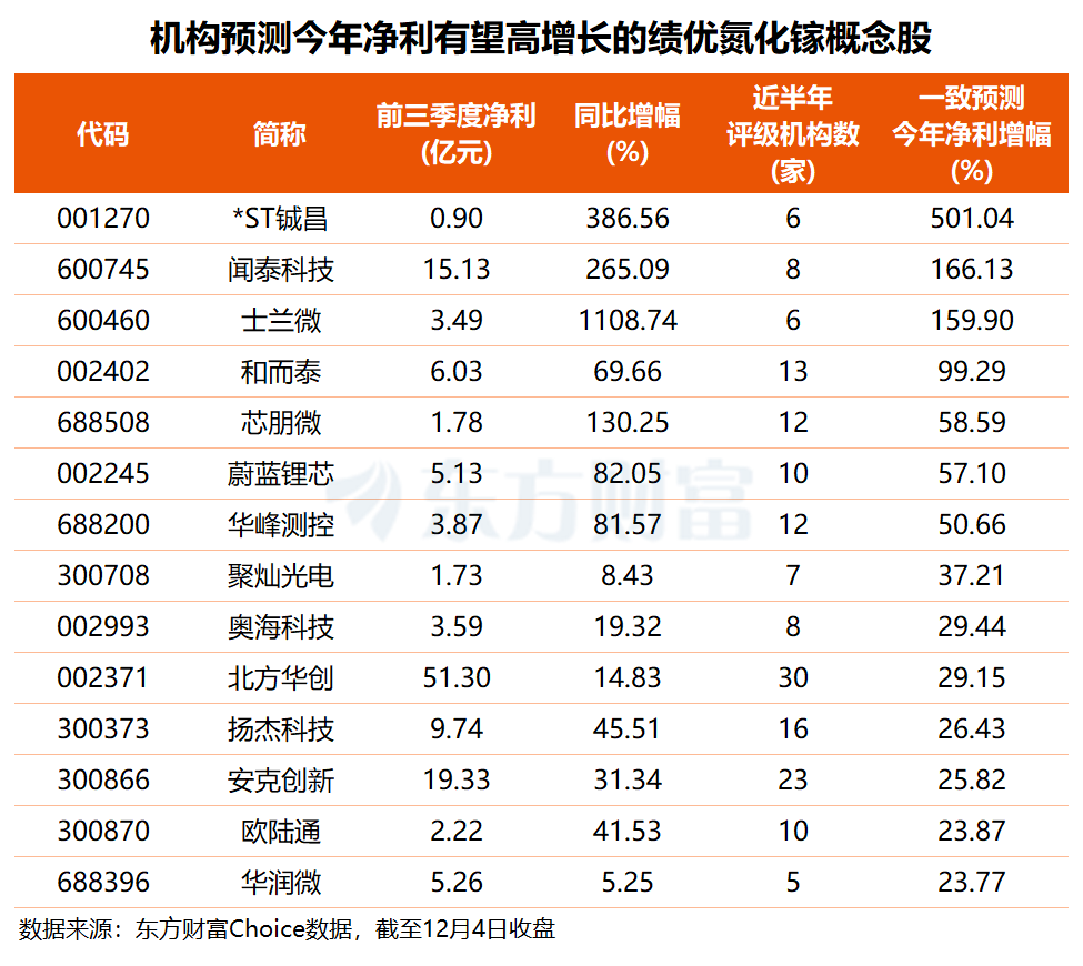 氮化镓领域迎新突破 这三只绩优股今年净利有望翻倍增长