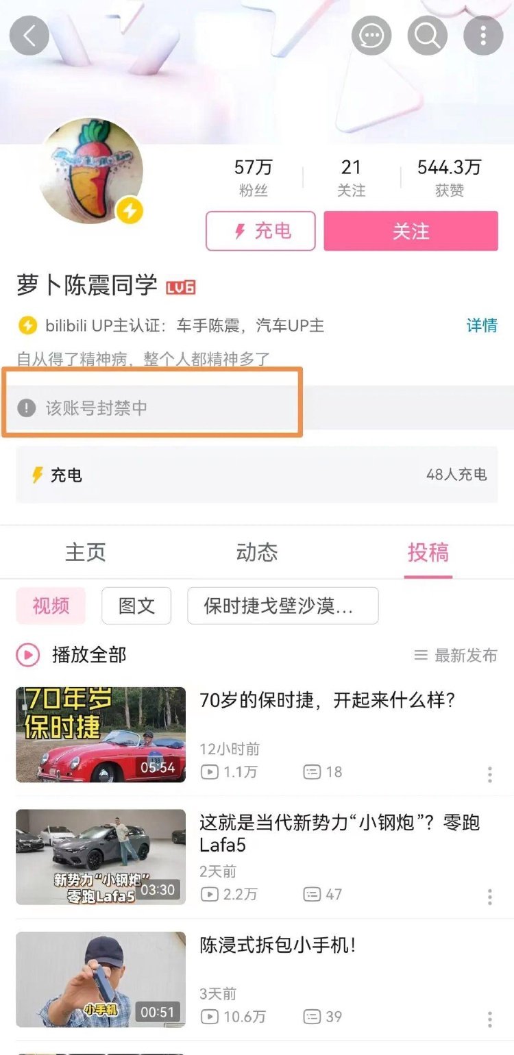 陈震的今日头条账号也显示因违反相关规则,该用户已被禁言。