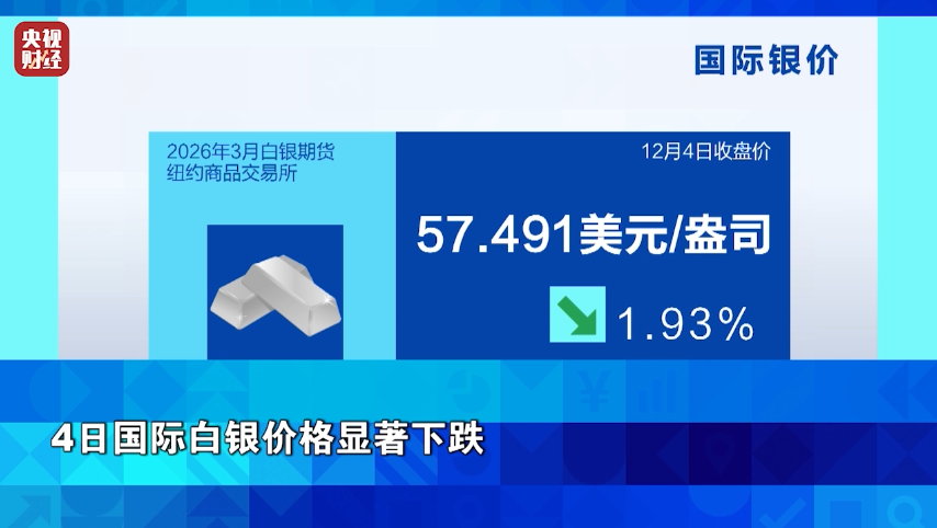 另一方面,周四白银价格在连续、快速冲高后出现技术性回调,盘中跌幅一度达3%。截至收盘,纽商所明年3月交割的白银期货价格报每盎司57.491美元,下跌1.93%。