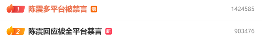 随后,#陈震回应全平台被禁言#的词条亦冲上微博热搜榜。