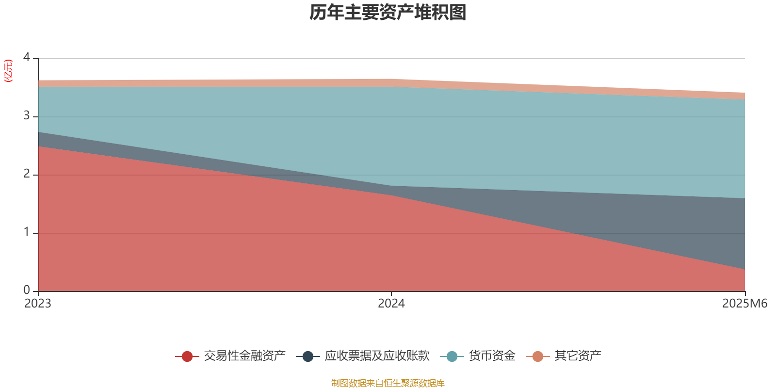 资产重大变化方面,截至2025年6月,公司交易性金融资产较上期末减少77.44%,占公司总资产比重下降34.23个百分点;应收票据及应收账款较上期末增加644.57%,占公司总资产比重上升31.38个百分点;货币资金较上期末减少0.35%,占公司总资产比重上升3.1个百分点;固定资产较上期末减少11.17%,占公司总资产比重下降0.14个百分点。