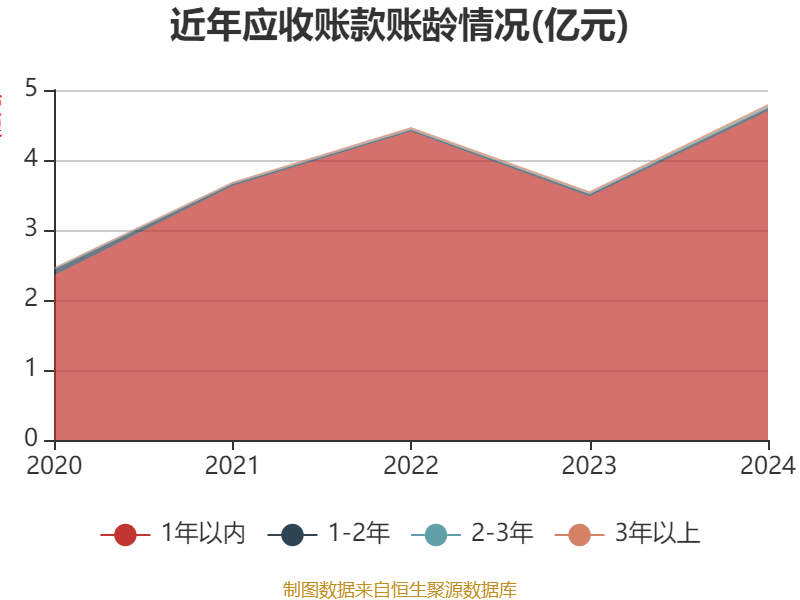 从应收账款账龄结构来看,截至2024年末,公司账龄在1年以内的应收账款余额为4.7亿元,较上年末增长1.22亿元。
