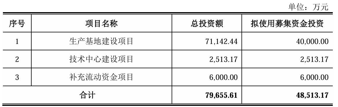 公司表示,通过本次融资及募投项目的实施,将生产智能化制造水平提上一个台阶,提升规模效应,优化产品结构,提高公司的核心竞争力、盈利能力和风险抵御能力,同时也将提高并增强技术开发与产品创新能力和运营管理能力。