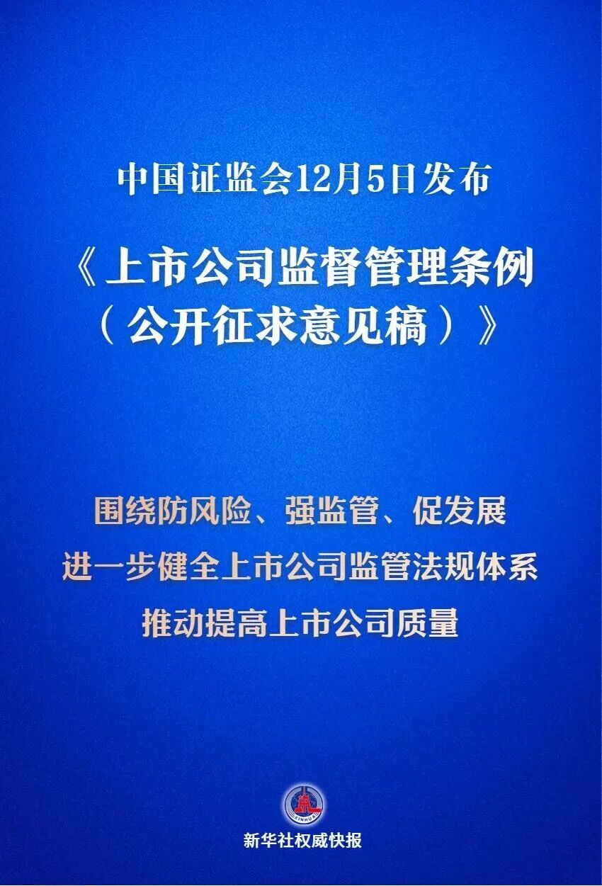 12月5日,中国证监会发布《上市公司监督管理条例(公开征求意见稿)》,这意味着我国将迎来首部专门的上市公司监管行政法规。